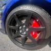 - Red Brembo brake calipers, clear paint protection film applied (note: minor scratch on left front fender)