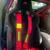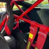 - Aftermarket red harness bar and matching racing harnesses installed