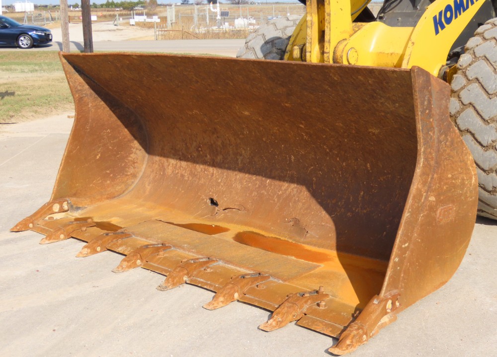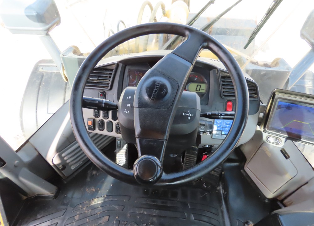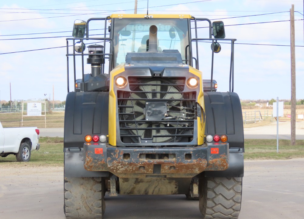 Heavy-duty wheel loader designed for demanding material handling applications. Features include articulated steering for excellent maneuverability, hydraulic quick coupler for versatile attachments, and ride control for smoother operation. Enclosed climate-controlled cab with air suspension seat provides operator comfort during extended use. Ready for loading, stockpiling, and material transport with powerful Komatsu performance.