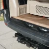 - Power-Sliding Rear Bench Seat that converts into a comfortable bed for overnight trips