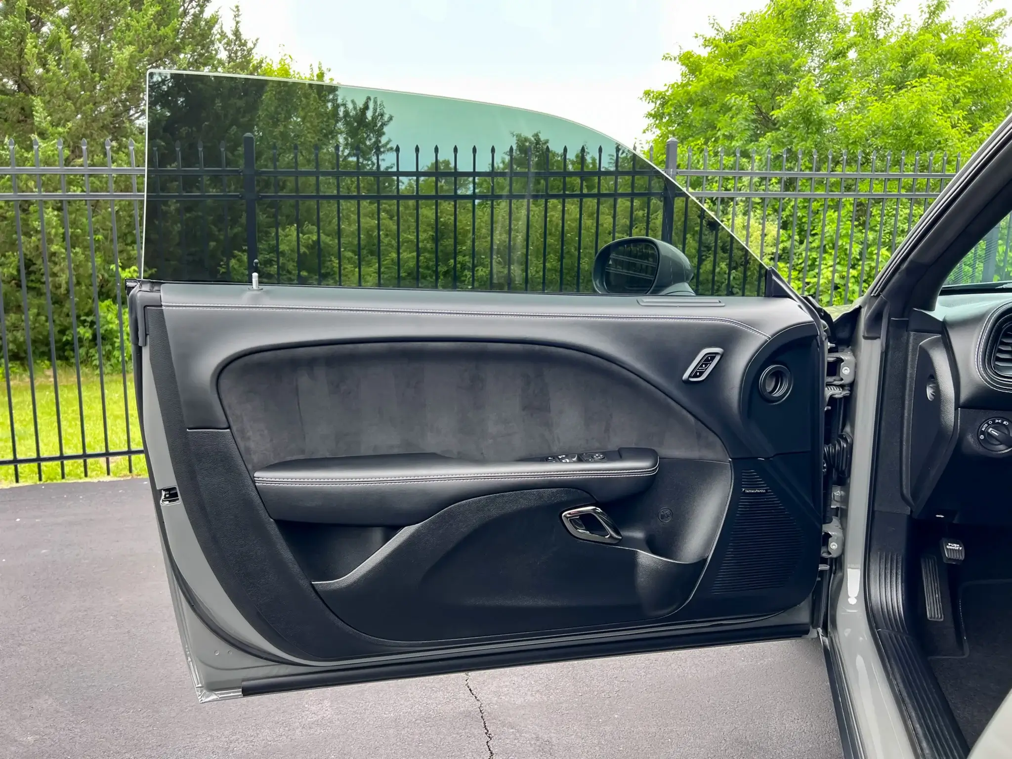 • Suede door trim and headliner, premium stitched dash