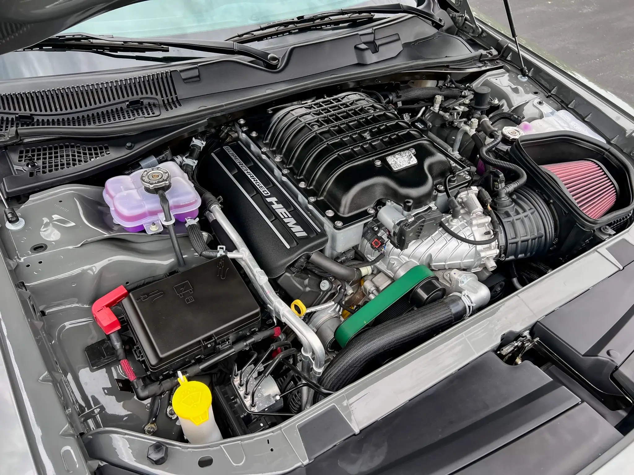 • Widebody Hellcat Redeye chassis with functional Air-Grabber hood and SRT performance spoiler