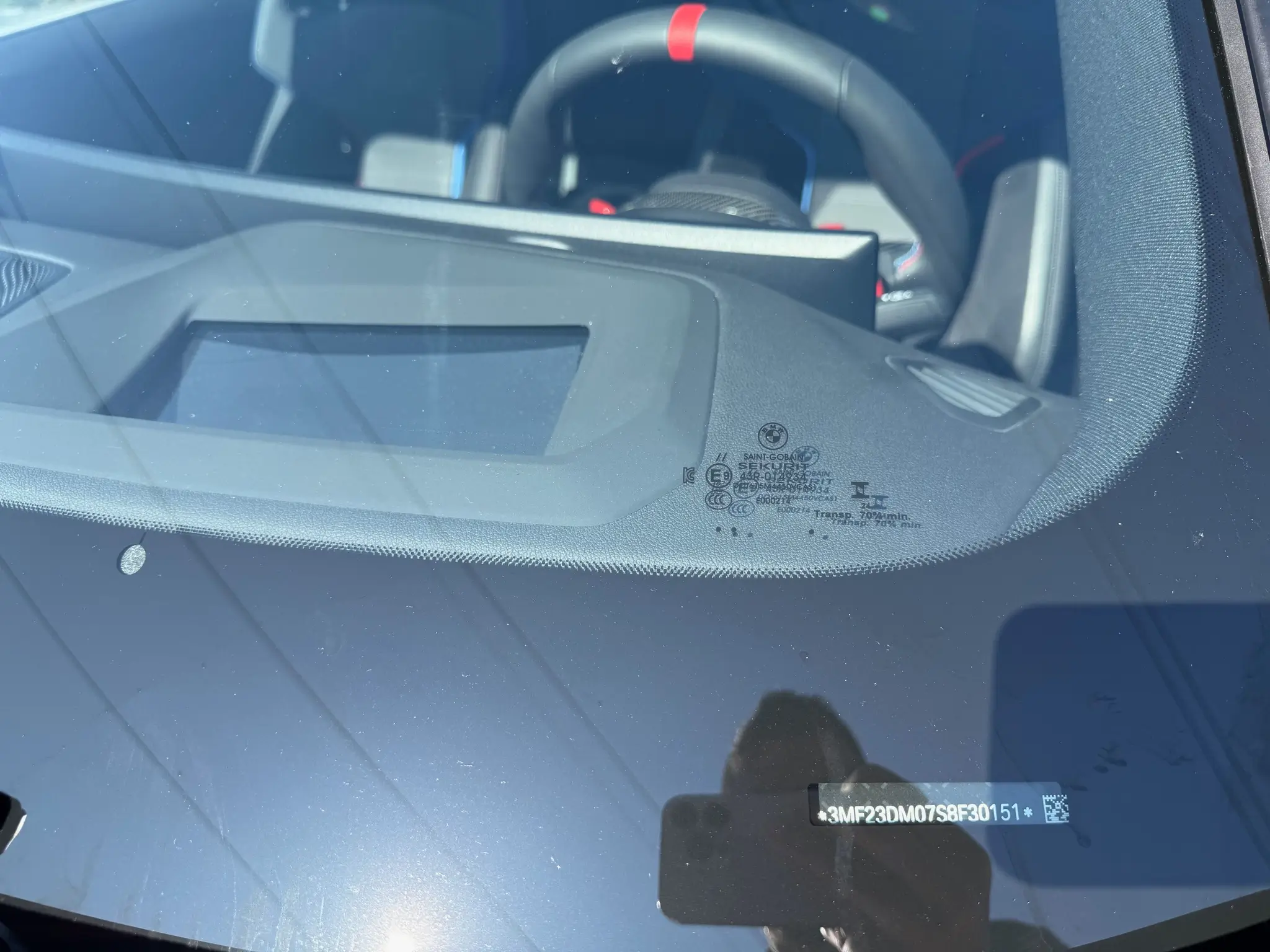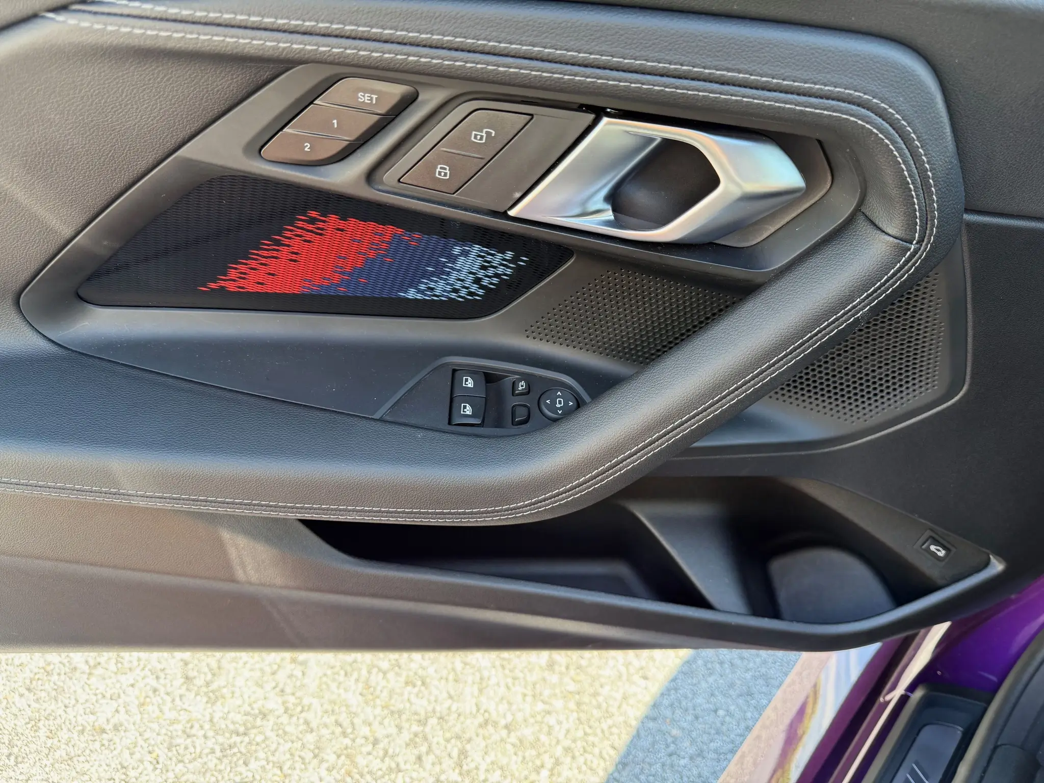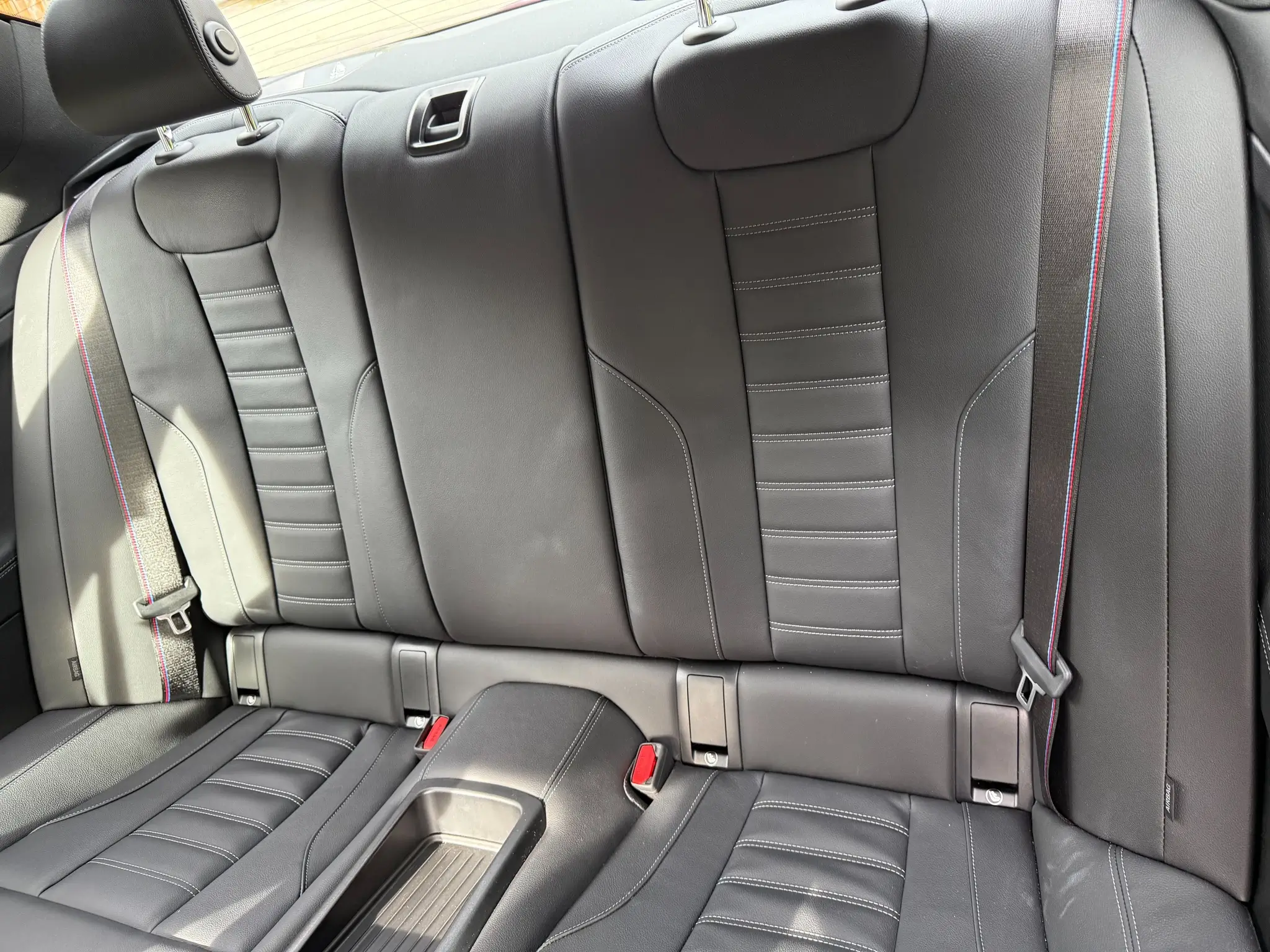 • Flat-bottomed M Leather steering wheel with red 12 o’clock marker and heating